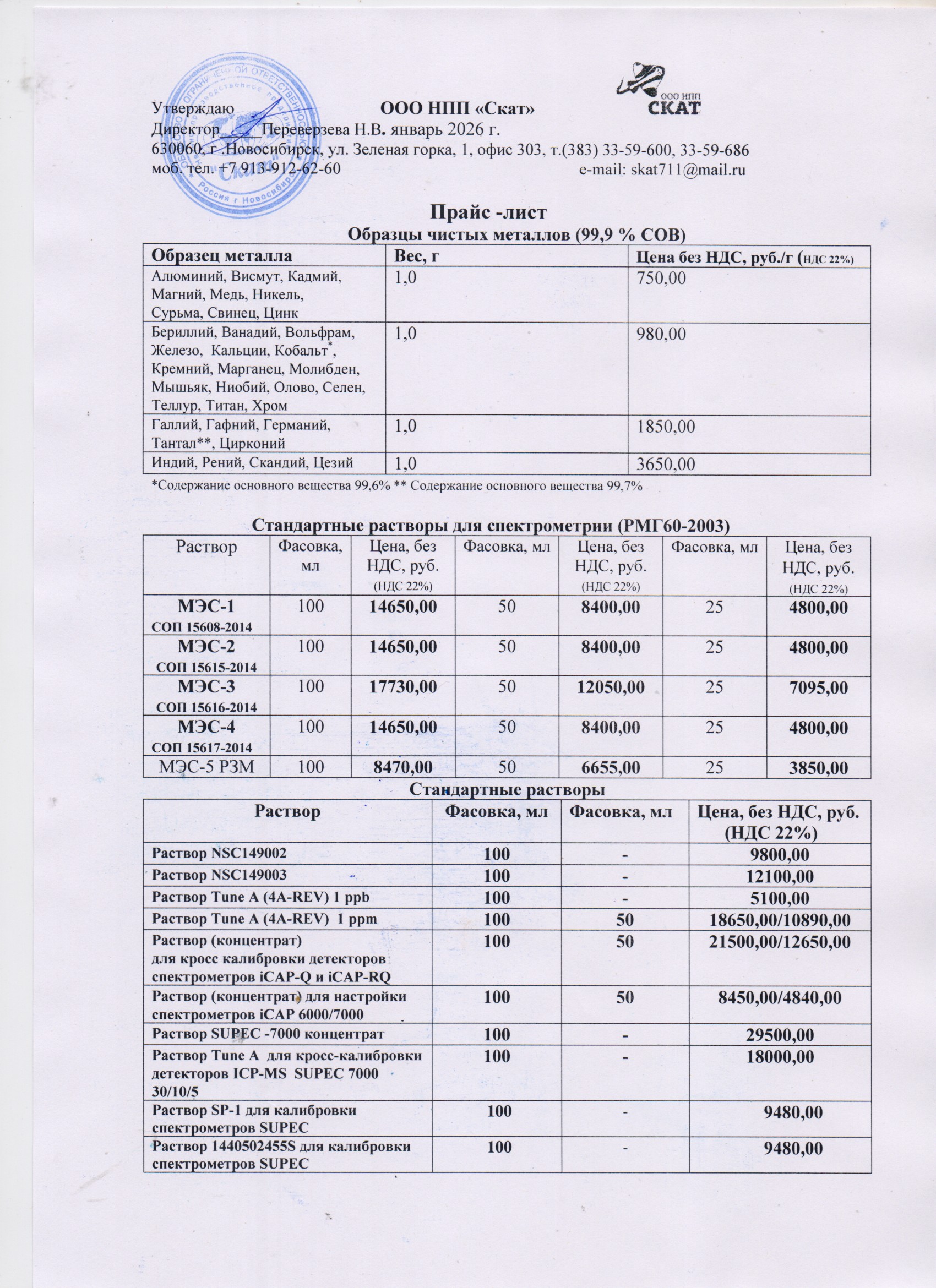Растворы для настройки спектрометров(1стр.)